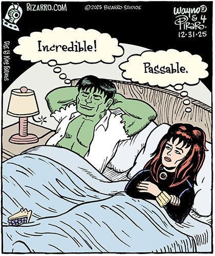 Since January 2018, the Monday-Saturday Bizarro comics have been written and drawn by my comics partner, Wayno. For more fun, check out Wayno’s weekly blog post.