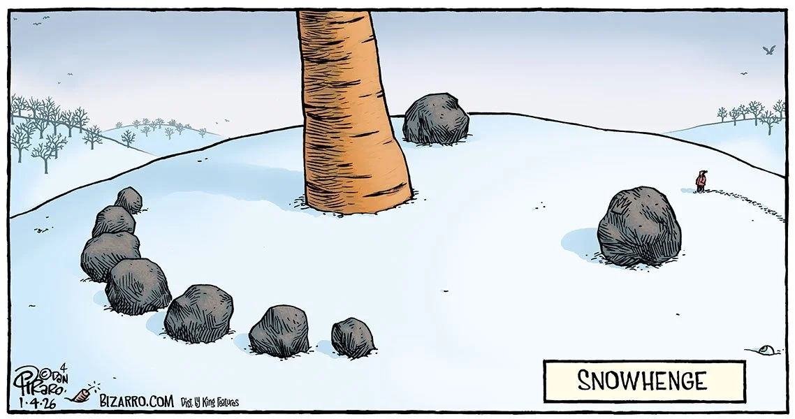 Super fun Bizarro swag from ComicsKingdom, including our 2026 Bizarro wall calendar.