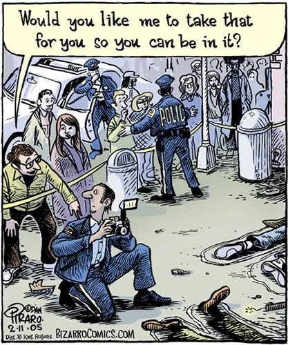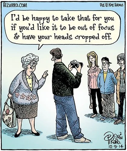I was leaving a restaurant one evening many years ago, and a family group of 6 or 8 people was standing outside getting ready to take a picture to commemorate the occasion. A man walked out of the restaurant and generously asked the photographer if she’d like him to take it so she could be in it. She enthusiastically accepted his offer and handed the camera to him.