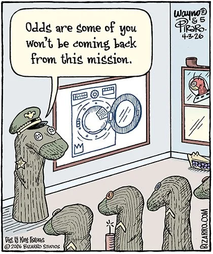 I’m Dan Piraro, the creator of the Bizarro newspaper comic, and this is my weekly blog post. The large Sunday comic above is mine, as are all of the non-cartoon comments below.