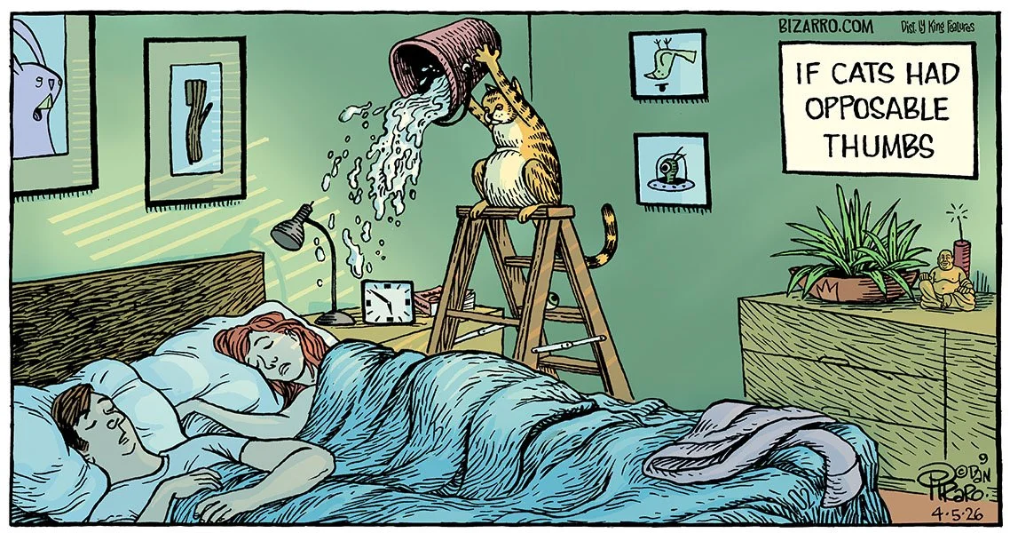 The cat in my Sunday comic above has a quieter, if no less gentle, way of awakening its gods. It’s always something, I guess.